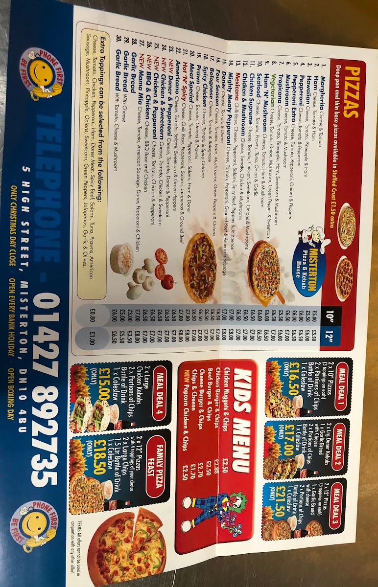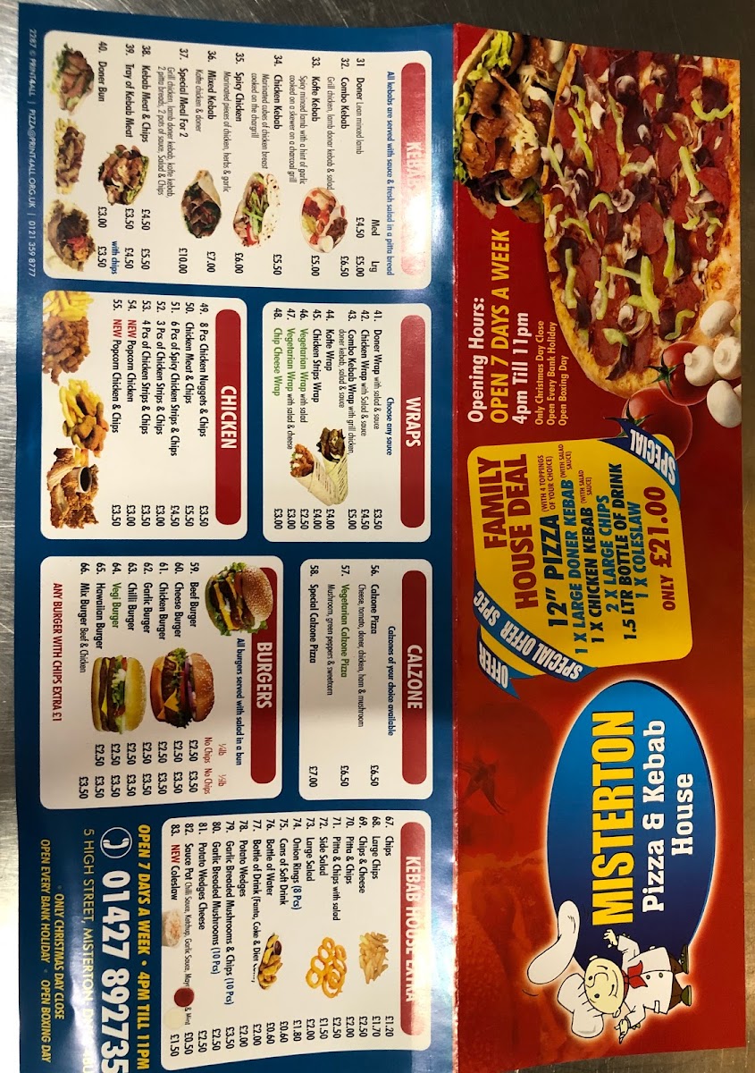 Misterton pizza & Kebab House Menu